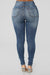 5-pocket style Zip fly chrome button closure Sandblast washed denim Ripped and destroyed design Stretchy