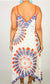A printed hanky hem dress. Model is wearing a size Small