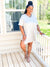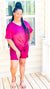Set features oversized top with side slit and biker shorts.